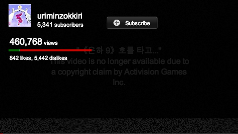That didn’t last long. U.S. video game maker Activision has filed a copyright takedown demand with YouTube resulting in the removal of a video that sees a North Korean man dream of reunification, Korean domination of space and the collapse of the United States.