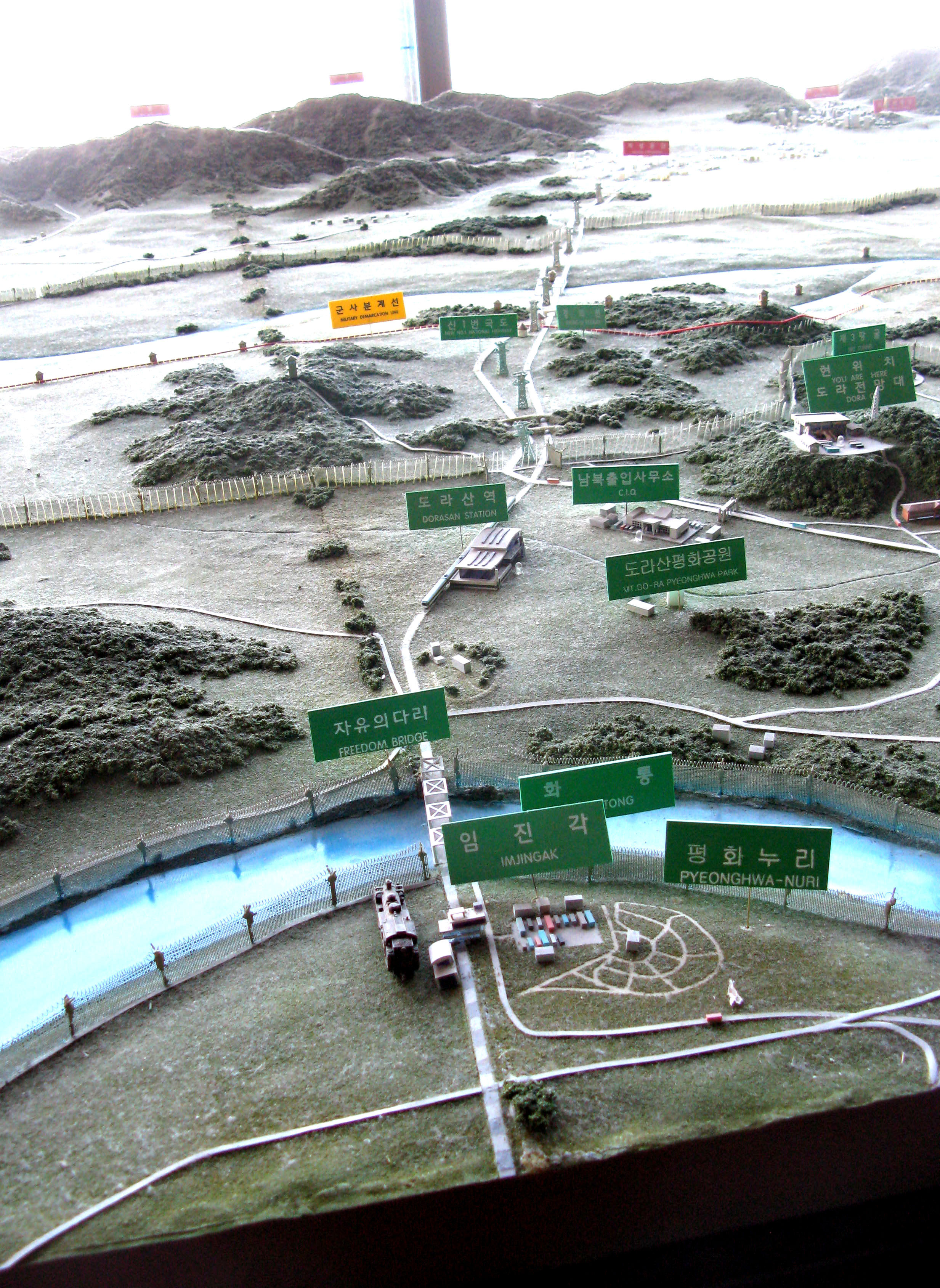 A topographical display near the western transportation corridor across the Korean demilitarized zone shows the route to the Kaesong Industrial Park.