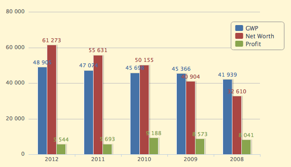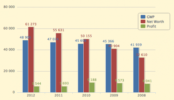 The official financial information shows a business that’s growing — just be sure to read the chart from right to left — with the amount of premiums and net worth up every year since 2008. But net profits have been sliding in recent years, down 40 percent in the two year period from 2010 to 2012.