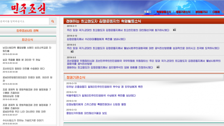 The newspaper launched a website recently at www.minzu.rep.kp that carries news, photos and video from the newspaper. The launch wasn’t announced but it appears to have come online sometime in March 2019.